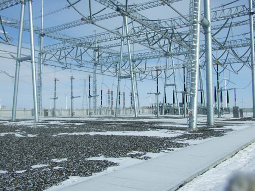 终期工程规模:1200MVA主变压器4组;500kV出线3回,均至张北开关站;220kV出线16回;每组主变低压侧安装1×(±60Mvar)的SVG设备+4×60Mvar无功补偿电容器。